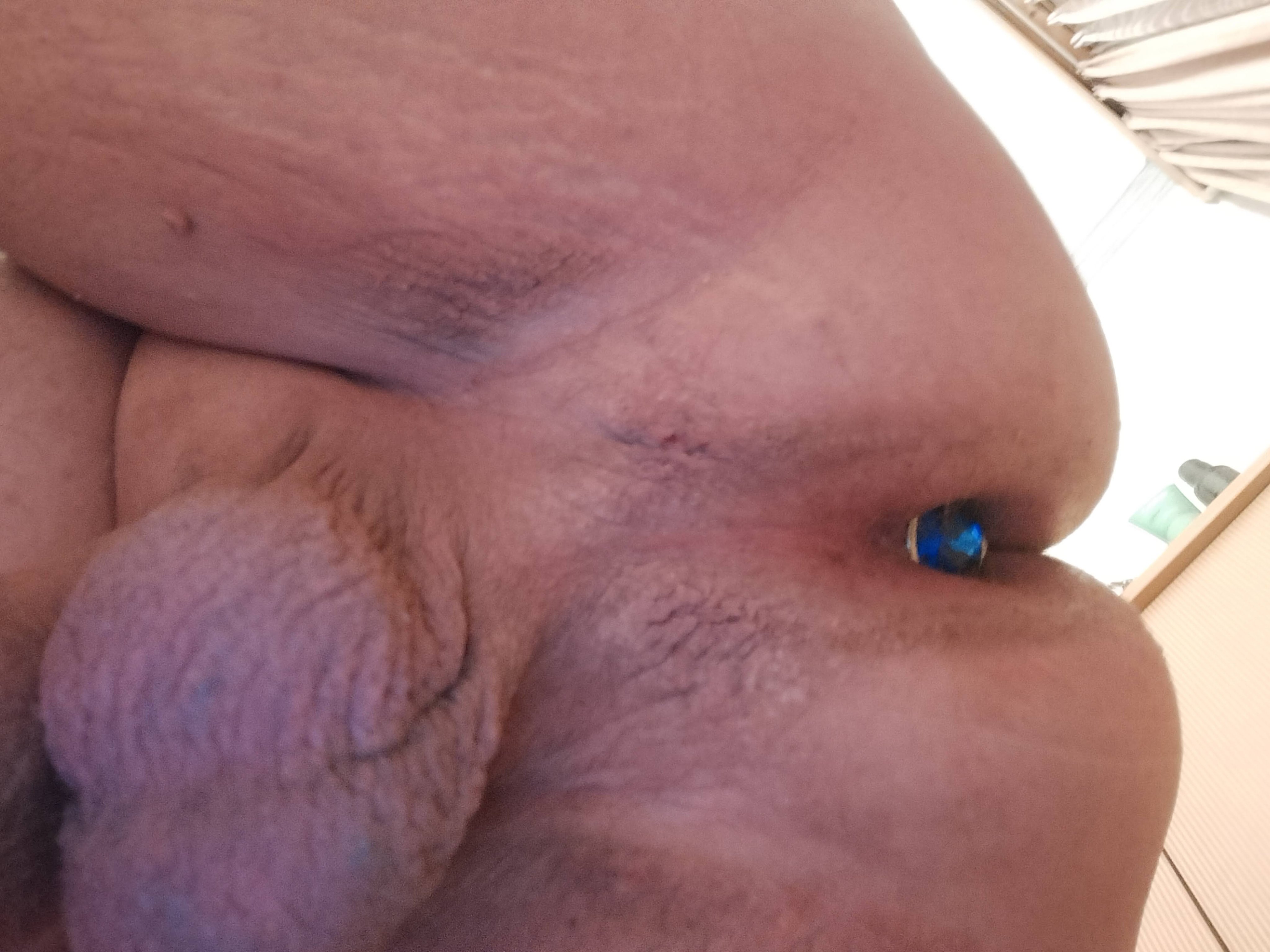 Blauer Analplug im iArsch