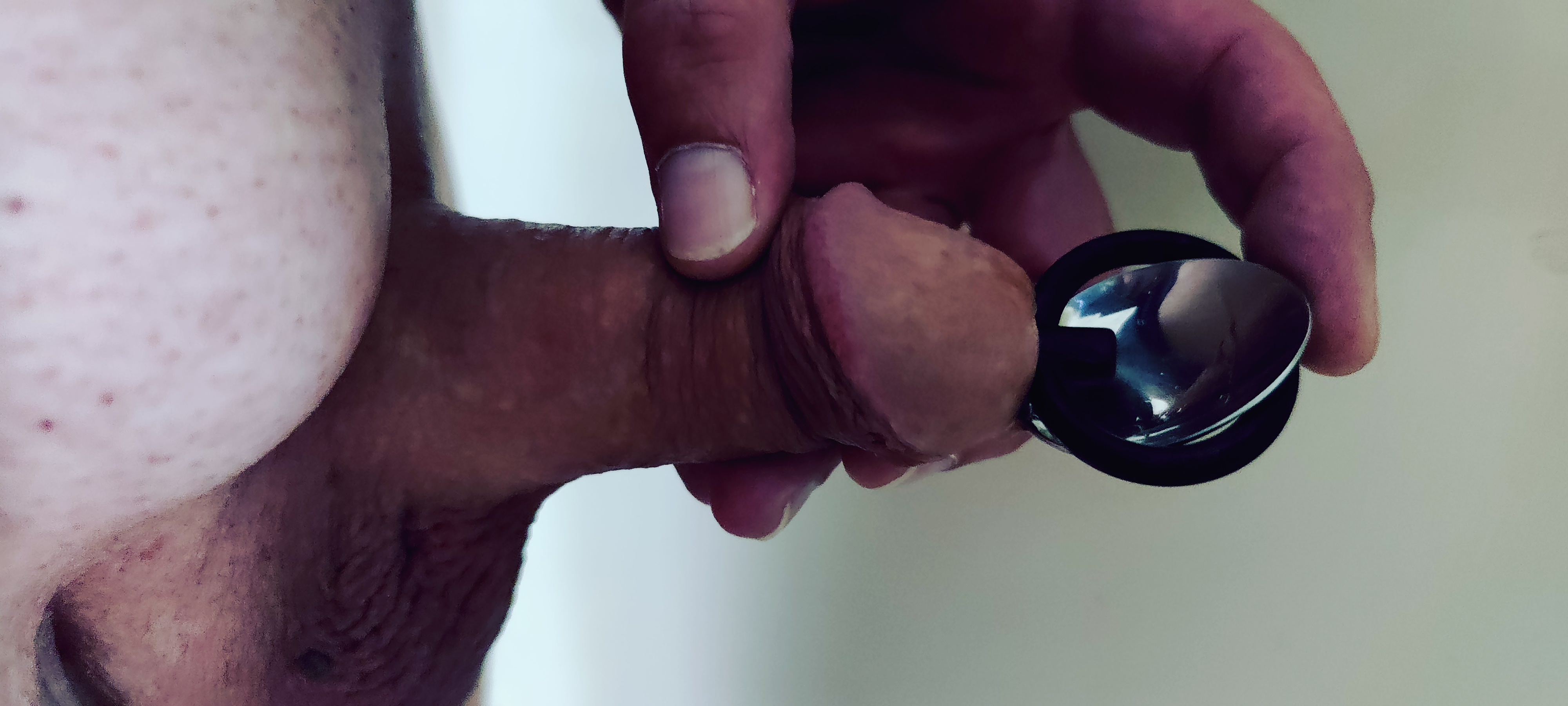Zum Ausprobieren mal Löffel und Dilator zusammen in den geilen Schwanz geschoben.