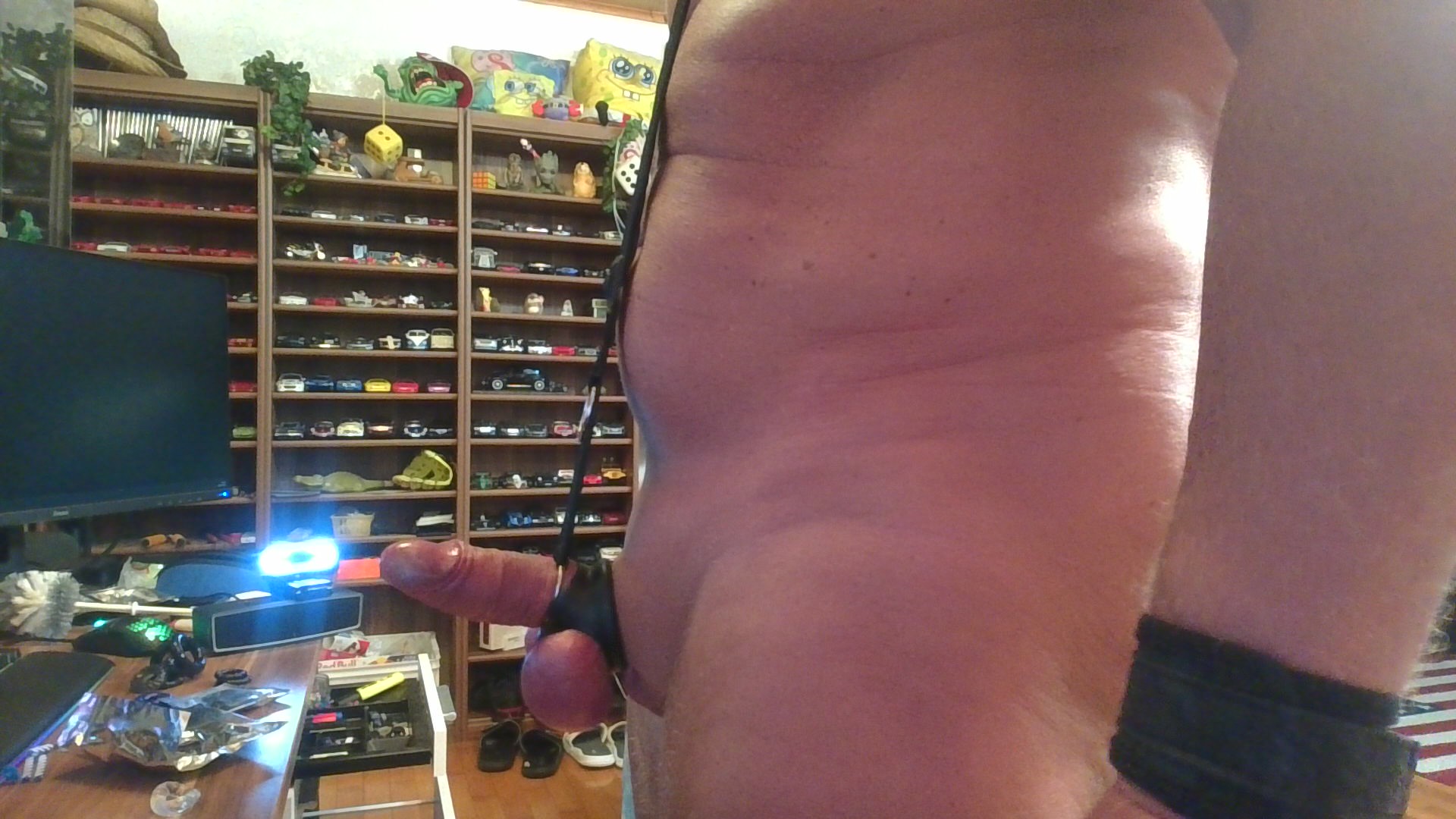 Schwanz und Eier abgebunden bereit für die Bestrafung ;-)