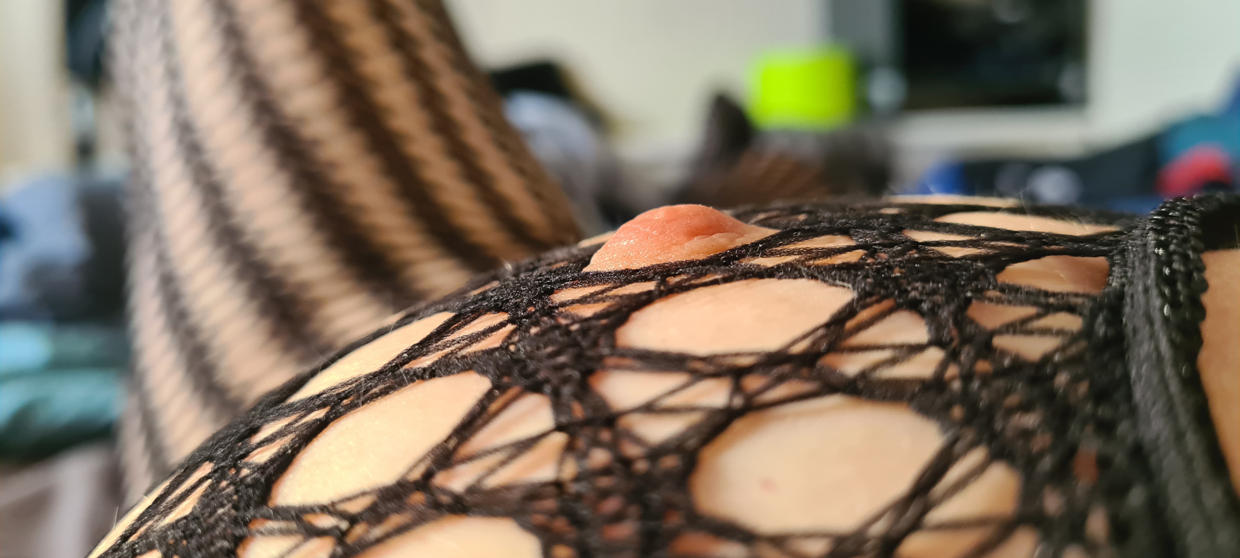 Jenna_Joy im Netzoutfit mit harten Nippeln