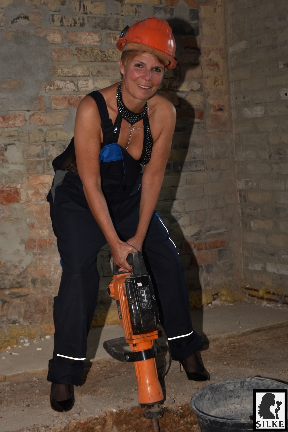 Das ist ja Mal eine geile geschmückt Bauarbeiterin.