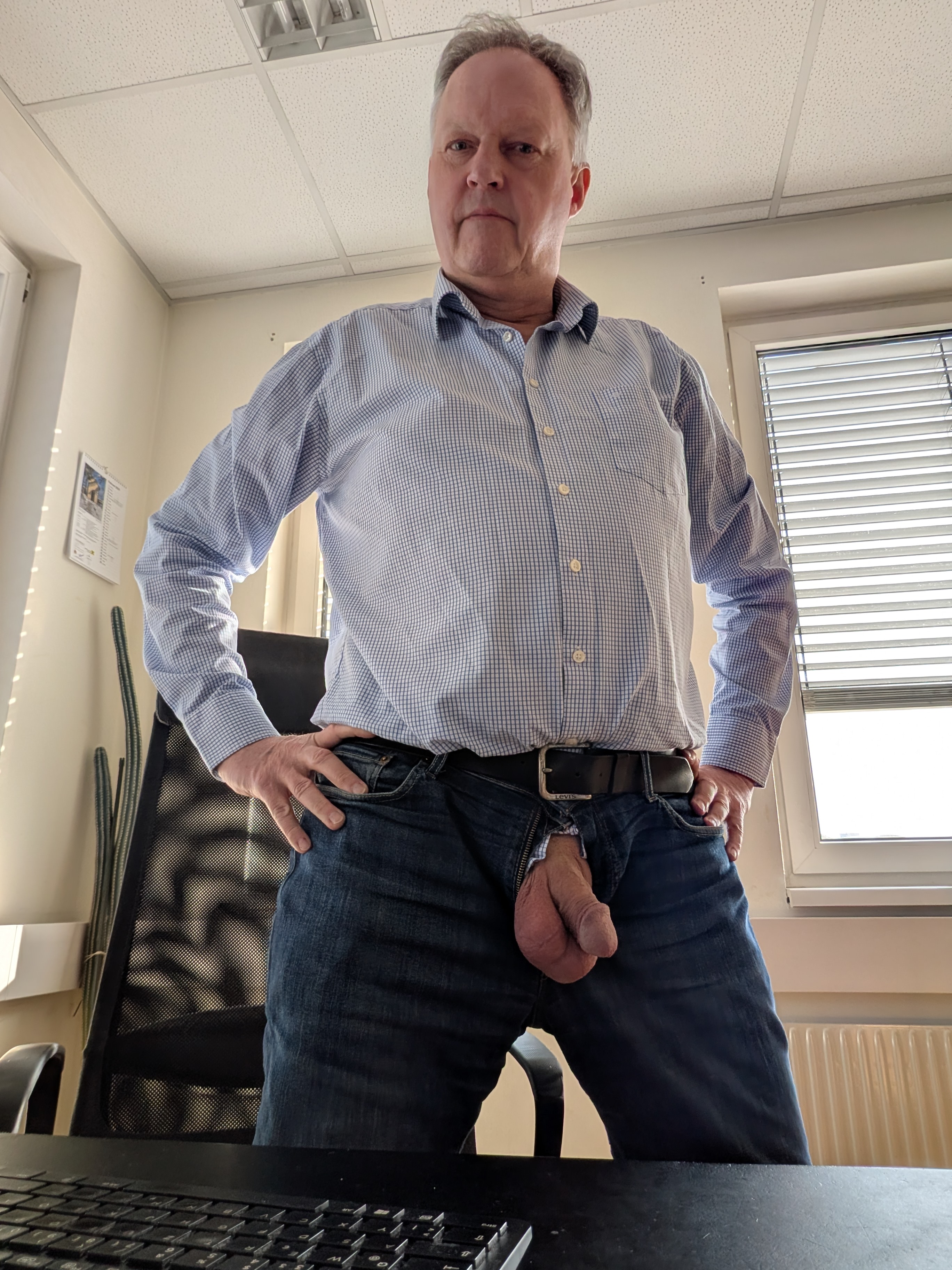 Zeige im Büro meiner Kollegin meinen Schwanz und Eier