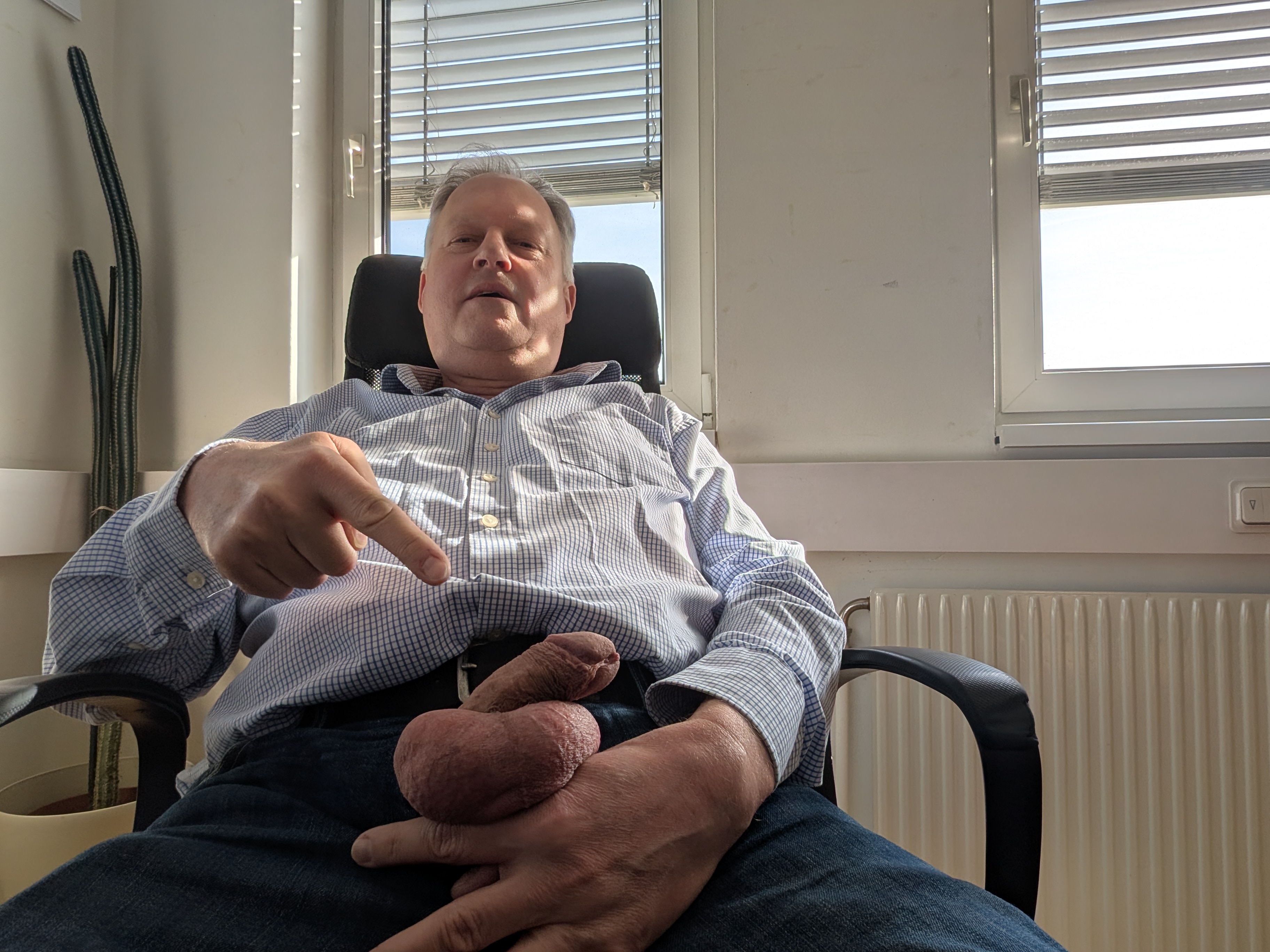 Meine Kollegin wollt mal meine Eier und meinen Schwanz begutachten, bitte sehr...