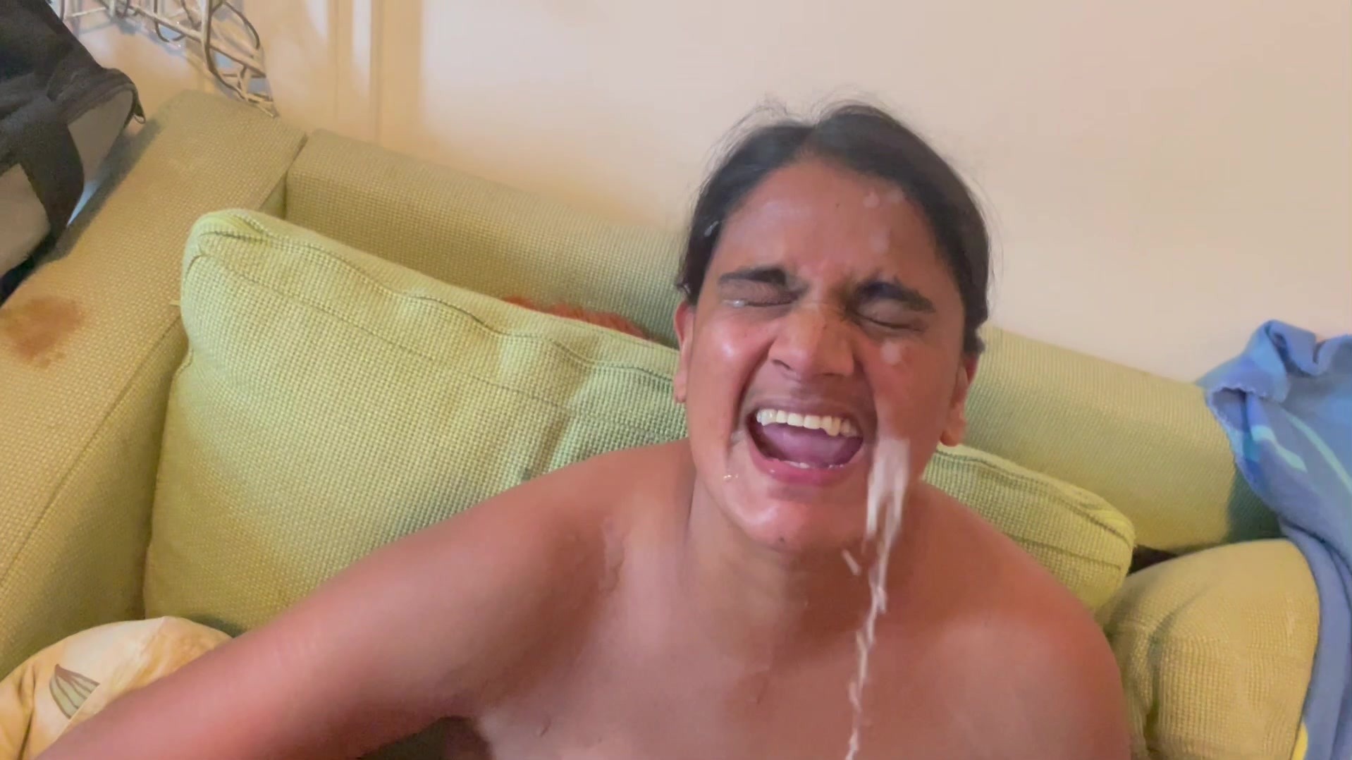 Indische Hausfrau bekommt ein Gesichtsbesamung. .Indische Hausfrau wird vollgespritzt
